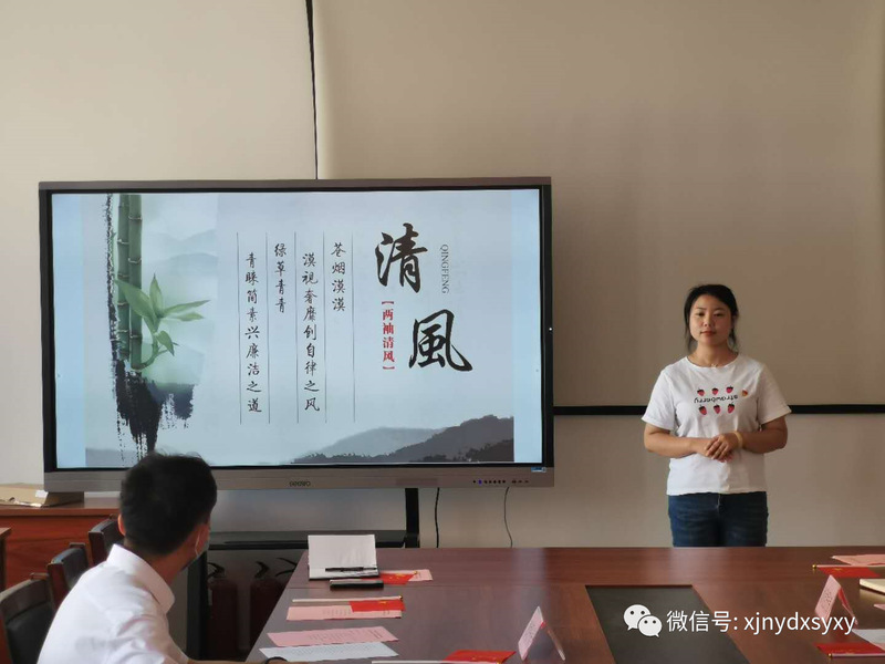 随后,由教学办刘丹老师演讲《清风扶正气、廉洁建校园》,其中提到“我们要以涂治院长等这些革命先辈为榜样,积极弘扬廉洁奉公、无私奉献的精神,不忘初心、牢记使命,淡泊名利、砥砺前行,努力做新时代的奋斗者。”警醒师生党员应该要时刻谨记明德笃志、励学敬业的校训,秉持自力更生、艰苦奋斗的精神。学习上,勤勉认真;生活上,勤俭节约;思想上坚定信念。