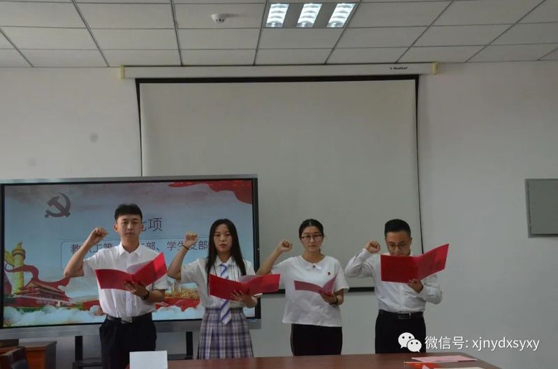 接着,由教师党员为新入党的学生党员代表佩戴党徽。同时由神殿娱乐 党委副书记、纪委书记李莉带领全体师生党员重温入党誓词,使全体师生党员能够牢记自己的职责与义务,时刻警醒自己,永葆奉献精神,永葆赤子之心。