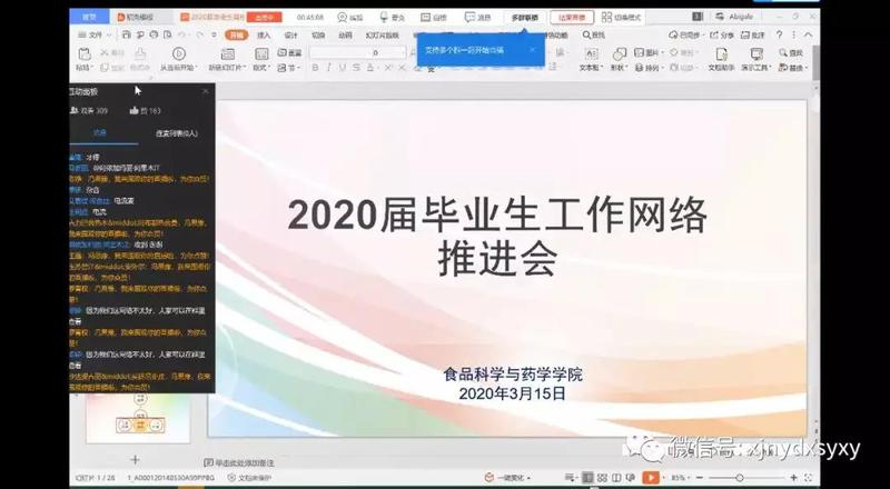 党委副书记、纪委书记李莉、教学副院长杨晓君、教学办副主任陈铮、学工办冯思豫、毕业班班主任以及全体在校毕业生。推进会利用钉钉直播平台开展。
