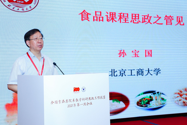 5月18日上午中国工程院院士、北京工商大学校长孙宝国作题为《食品课程思政之管见》的大会报告。他指出,课程思政不等于思政课程,课程思政是所有教师的本职工作,是新时代高校人才培养的重要工作。食品类院校要从食文化角度切入,紧紧抓住这一“牛鼻子”,充分发挥食品学科在课程思政教育方面的独特优势。