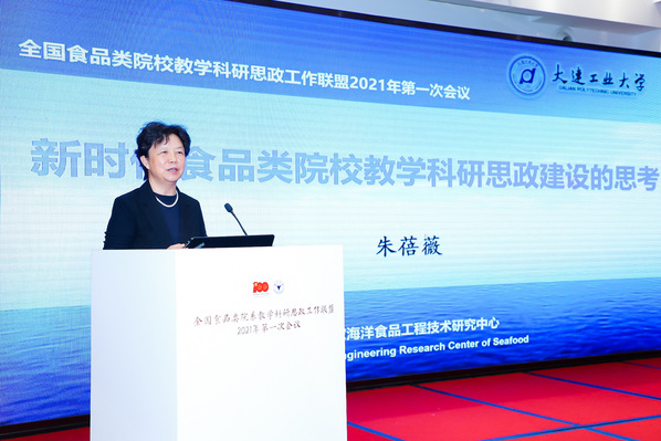 中国工程院院士、国家海洋食品工程技术研究中心主任朱蓓薇的报告主题为《新时代食品类院校教学科研思政建设的思考》。她通过梳理新时代食品类院校教学科研思政建设的背景和政策支持指出,新时代食品类院校教学科研思政建设工作要加强食品专业课程体系与思政建设相融合,深入挖掘食品专业课程的思政元素,促进食品专业创新创业实践体系与思政建设相融合,落实师资队伍建设与思政建设的融合。
