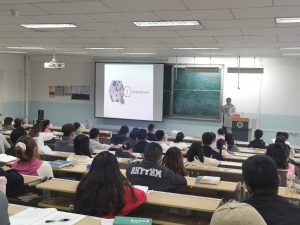 副院长周建中副教授向研究生做了“树立理想信念”讲座,周院长通过自身经历、引用名人事例,向研究生上了一堂生动的思想教育课,在场研究生受益匪浅。