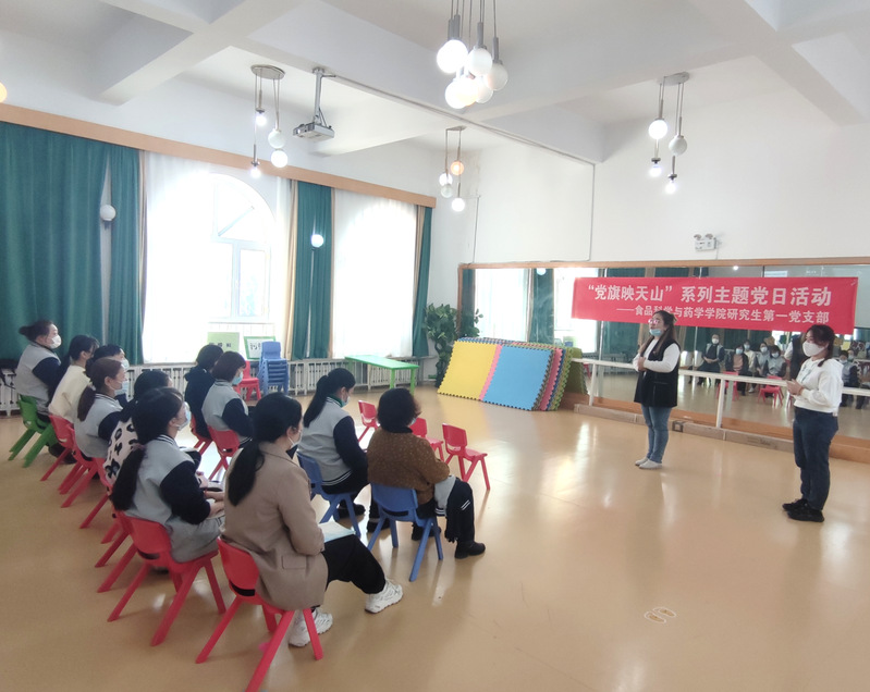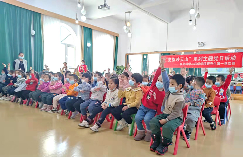 伴随着小朋友们的欢迎声,神殿娱乐 研究生第一党支部“食品科普我先行”宣讲团的成员们走进了新疆农业大学幼儿园,为小朋友们带来了以“食品安全伴我成长”为主题的食品科普宣讲会。