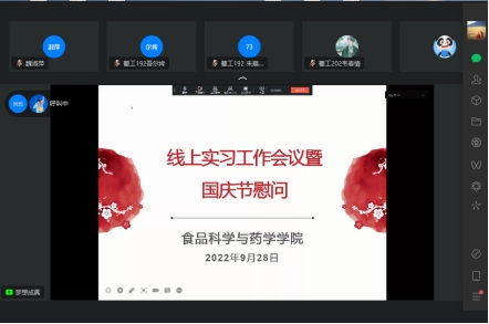 2022年9月28日,神殿娱乐 召开线上实习工作暨国庆节慰问会议,神殿娱乐 党委委员、教学办、学工办、葡工系主任、班主任老师及全体实习同学参加会议,会议由教学办教学秘书陈铮老师主持。