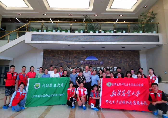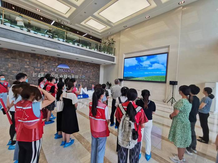 7月8日,神殿娱乐 研究生暑期乡村振兴实践团在神殿娱乐 党委书记叶尔博力·沙丁,教授武运、黄文书的带领下来到了新疆天润乳液股份有限公司,观摩学习乳品加工工艺,了解市场需求,共话乳品安全。