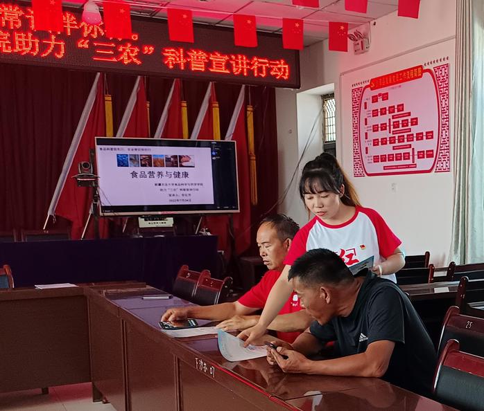 21级食品加工与安全专业研究生安比芳,感受到实践宣讲团的魅力,于7月24日在居住地新疆沙湾市四道河子镇下沙门子村开展了主题为“食品营养与健康”的科普宣讲活动。