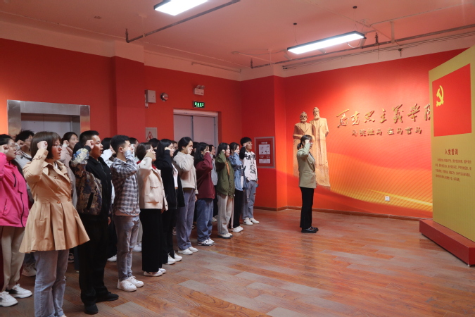 活动最后,全体师生在党旗下重温了入党誓词。此外,还参观了校园以及食品加工产教融合实训中心。