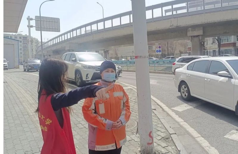 支部青年团员在进行志愿服务之前便做好了准备工作,提前熟知哈密南路周围标志性建筑。当有路人时wen'lu支部青年团员耐心准确地告知具体路线,体现出农大学子乐于助人的精神面貌。
