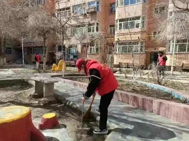 实践过程中,志愿者们身穿红马甲,分区对社区的道路、居民楼楼道以及一些休憩场地认真进行清理。志愿者们满怀热情,认真清扫,经过两个多小时的志愿服务后,社区的环境得到了改善。
