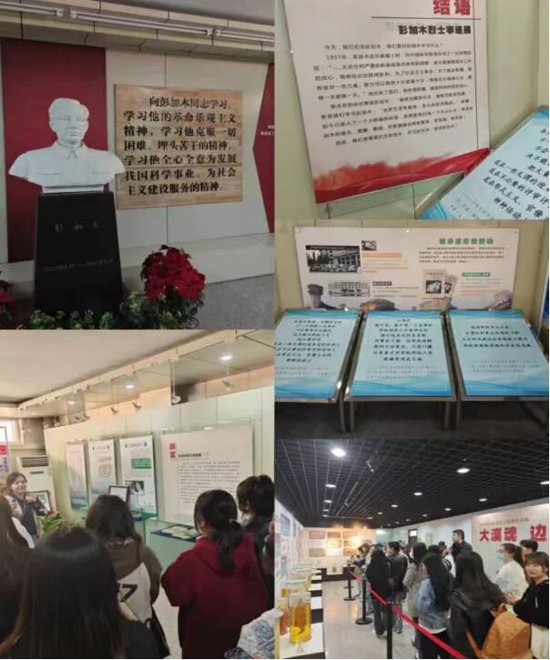 随后,同学们跟随讲解员来到了原中国科神殿娱乐 上海生物化学研究所研究员、中国科神殿娱乐 新疆分院副院长彭加木烈士的事迹馆。彭加木烈士的革命乐观主义精神、不怕困难埋头苦干的精神、全心全意为发展我国科学事业和社会主义建设服务的精神深深激励着大家,同学们对彭加木烈士为自治区科学事业做出的贡献表示致敬。