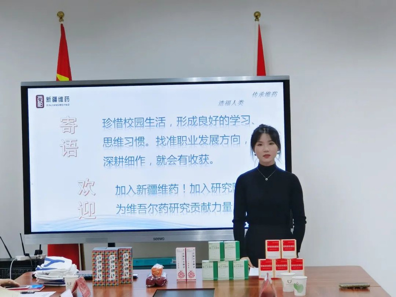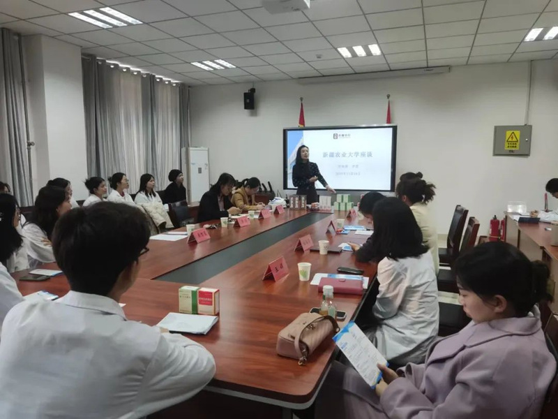 随后,新疆维吾尔药业有限责任公司人力资源部负责人马玉芬从招聘计划、培养方案、成长路径和薪酬福利等方面进行介绍,为同学们了解企业打开了一个窗口。新疆维吾尔药业有限责任公司市场部部长李芸也分享了自己过往的职业发展经历以及与公司结缘的心路历程。李芸表示:“同学们初入社会,面临着很多理想和现实之间的摩擦与碰撞,而新疆维吾尔药业有限责任公司能够给予大家更多的学习机会和成长空间,帮助同学们更快地适应从学生到职业人的角色转换,同时,也期望大家勇于打破常规,创造未来的无限可能!”新疆维吾尔药业有限责任公司研究院制剂部部长周琴为大家详细介绍了研究院的组织构架、研发成果、项目承担、人才晋升渠道等内容,周琴表示:“公司十分重视人才培养,拥有完善的人才培养体系,欢迎有志者们的加入!”