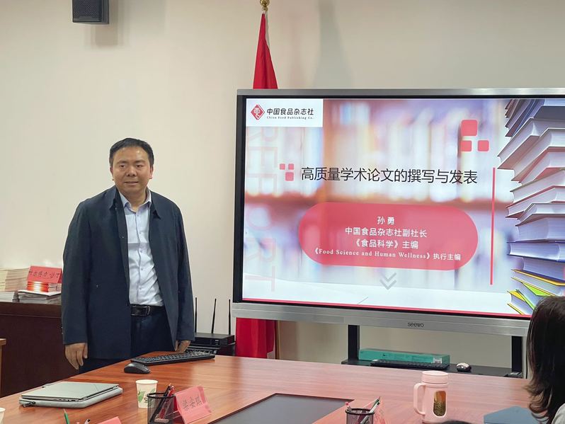 孙勇研究员首先介绍了《食品科学》《Food Science and Human Wellness》等优秀期刊近年来取得的多项荣誉。随后从科技论文的框架和特点、论文写作前的准备、论文的内容与写作技巧、常见写作问题等方面进行了深入讲解,并结合典型案例详细讲述了实验设计和论文撰写中容易出现的问题。最后通过文献计量分析了食品领域当前的研究热点和趋势,为师生开展科学研究提供了准确指引。此外,他详细讲解了论文撰写和投稿过程中需要遵守的学术规范,并多次强调要杜绝学术不端行为,保持科研工作的纯洁性和严谨性,这对规范师生的科研工作起到重要指导作用。