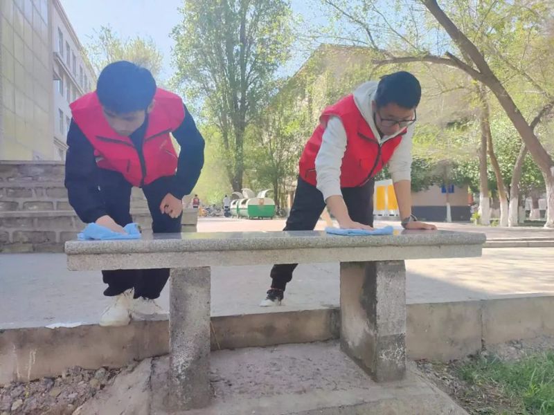 经过志愿者们的努力,停放在校园各处的共享单车的坐垫和校园内部分石椅都被擦拭干净,一定程度上方便了师生们的利用,校园周边环境也得到了美化。希望我院广大学生继续学习和发扬劳动最光荣的精神,树立正确的劳动观,争做能吃苦、肯奋斗的新时代青年。