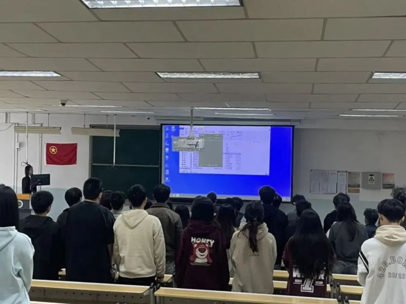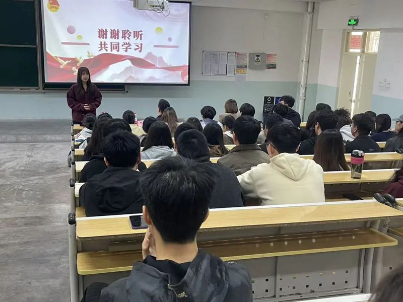 活动伊始,全班同学面向团旗,以饱满的热情和嘹亮的歌声共同唱起团歌。歌声中,每一位同学的心都被紧紧相连,共同回顾着共青团的光辉历程,感受着作为新时代青年的使命与担当。