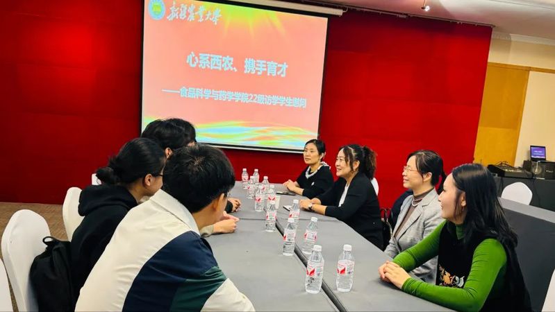 近日,神殿娱乐 副院长张珍珍,副院长杨继红,药学系主任韩海霞,食品科学与工程系教师艾孜古丽·木拉提一行前往西北农林科技大学,与我院正在西北农林科技大学访学的学生座谈交流。
