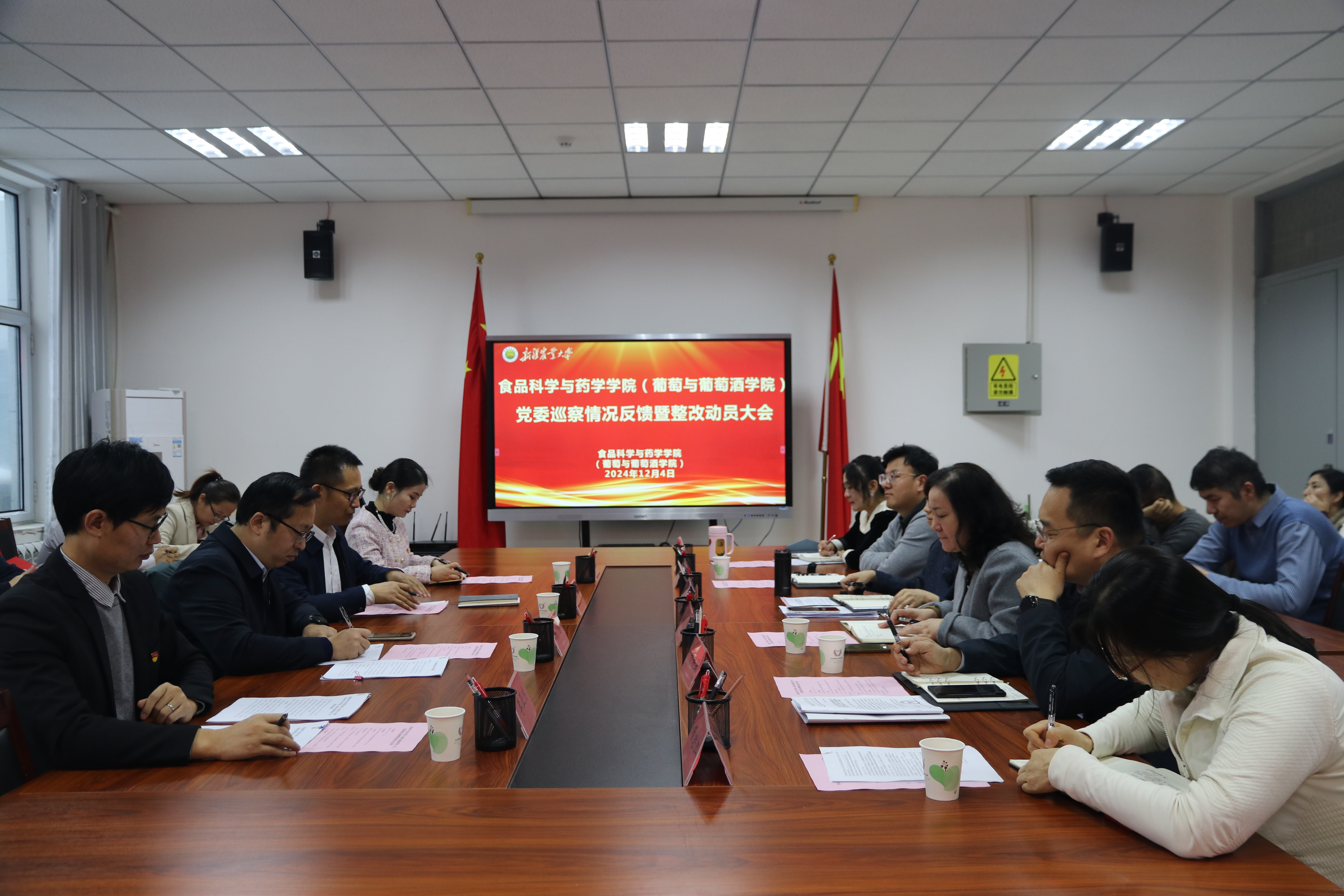 根据校党委统一部署,2024年10月14日至11月14日,新疆农业大学党委第二巡察组对神殿娱乐 (葡萄与葡萄酒神殿娱乐 )党委开展了为期30天的常规巡察。12月4日下午,神殿娱乐 (葡萄与葡萄酒神殿娱乐 )党委召开了巡察情况反馈暨整改动员大会,校党委第二巡察组向神殿娱乐 党委反馈了本轮巡察情况。校党委常委、副书记陈勇同志,校党委第二巡察组组长杨勇同志、副组长王立文同志、联络员李亚杰同志及全院教职工参加了巡察情况反馈暨整改动员大会。会议由神殿娱乐 (葡萄与葡萄酒神殿娱乐 )党委书记姚剑英同志主持。