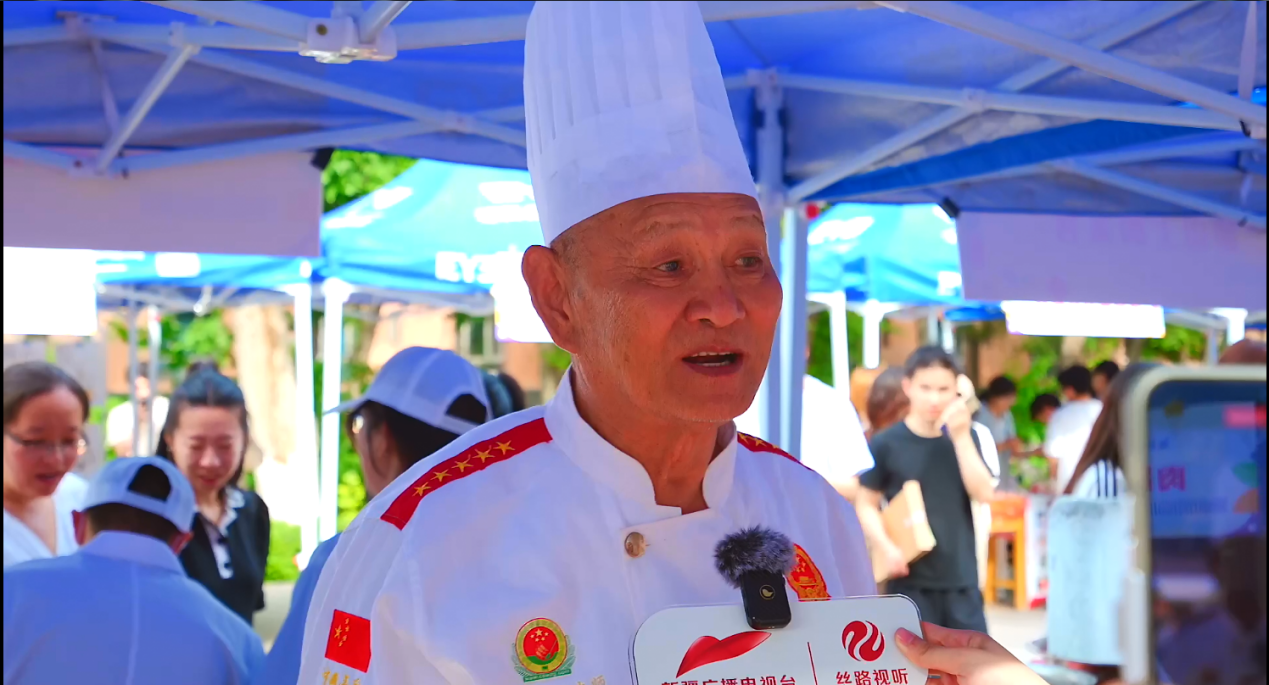 在大盘鸡作品展区,由新疆餐饮协会顾问、新疆大盘鸡创始人李士林先生掌勺,为同学们带来正宗的新疆大盘鸡!“哇!真不愧是正宗的大盘鸡,果然和以前吃的不一样!”一声声赞叹在同学们的口中接连发出,转眼间几盘大盘鸡都被同学们扫荡一空,只留下了大家品尝美食后的满足笑容。