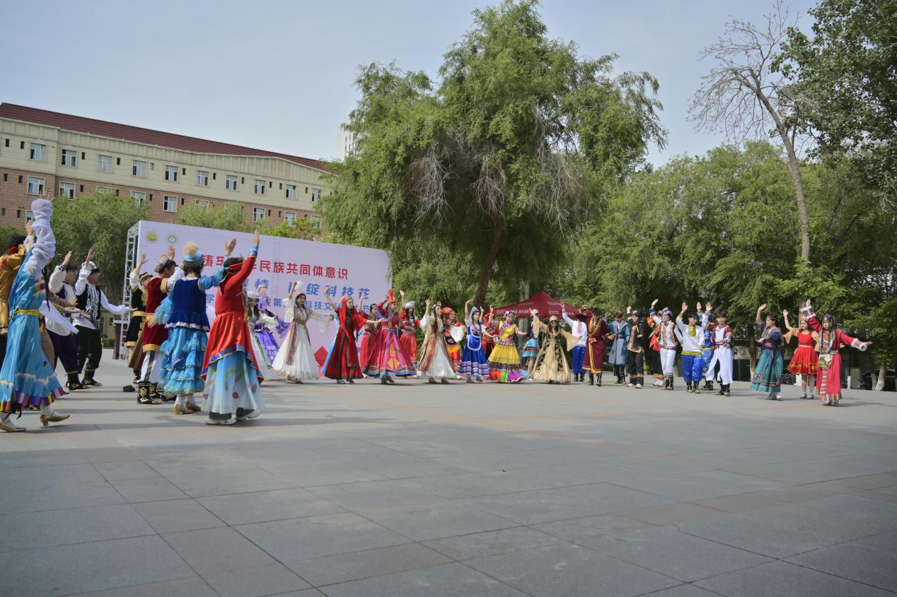 随后,42名大一新生踩着《美丽中国》的音浪涌入场中,他们身着各民族服饰展现出铸牢中华民族共同体意识的和谐旋律。